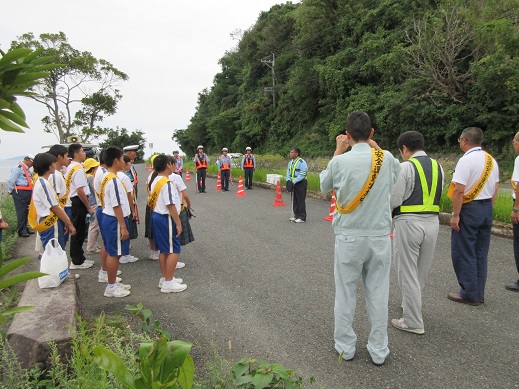国道を通る乗用車やバイクの運転手の方にチラシ等を配りながら安全運転のお願いをしました。