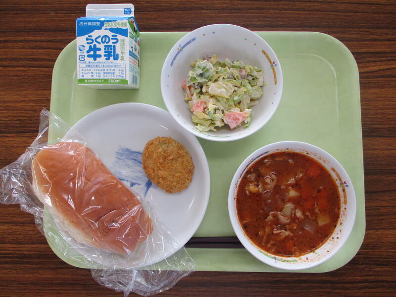 牛乳 カレーライス チキンカツ 海藻サラダ