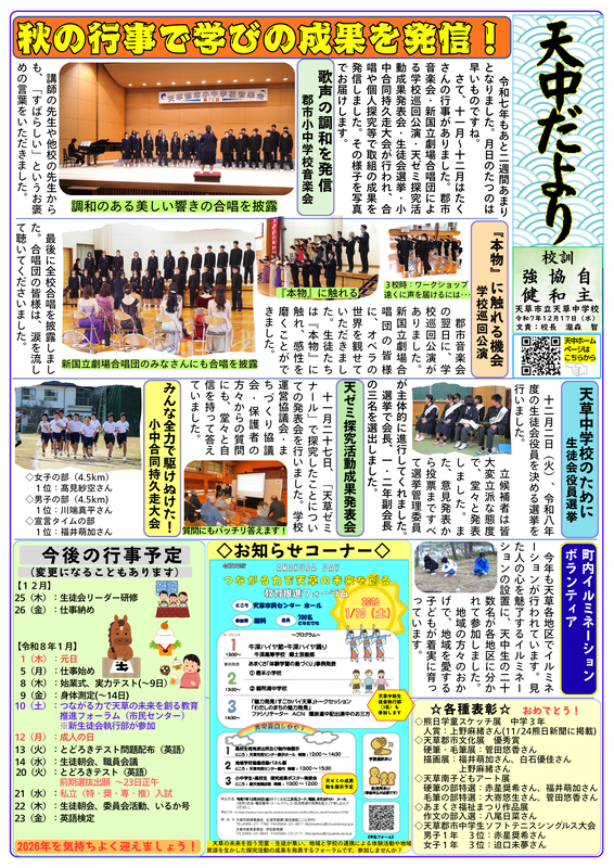 メニューの「学校からのおたより」>「学校だより」からもご覧いただけます。2025.12.17