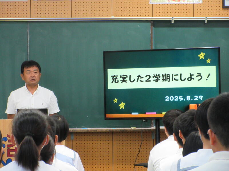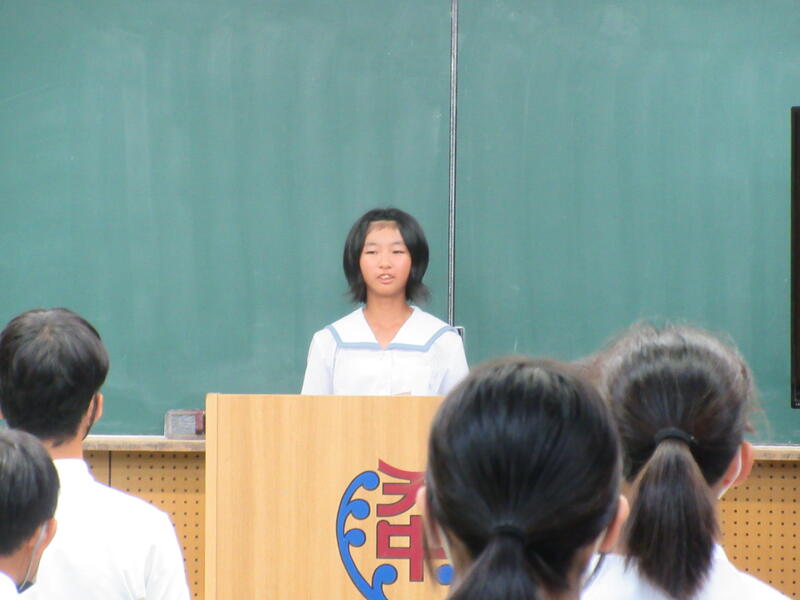 始業式では、各学年代表の生徒が夏休みを振り返り、2学期の抱負を堂々と発表してくれました。