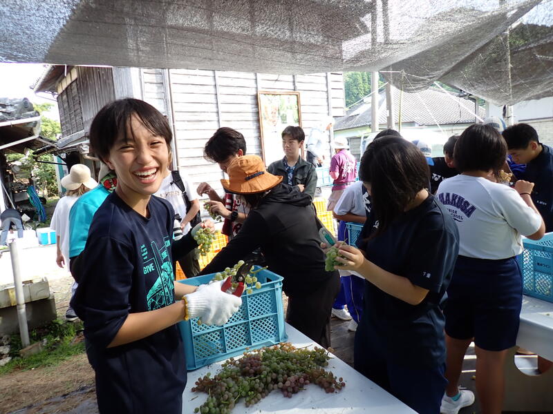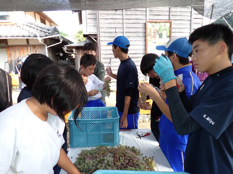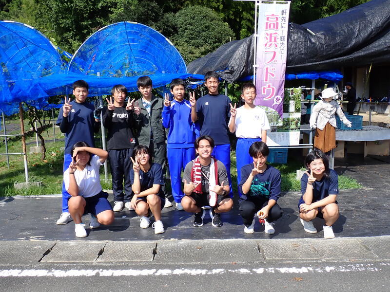 9月7日(日)に、高浜ぶどう収穫が行われ、天草中からも11名の生徒と5名の先生方がボランティアに参加してくれました。天草町平戸付近の畑で収穫体験と選別作業体験を行いました。天草町の宝、高浜ぶどうをこれからも守り、大切にしていってほしいと思います!