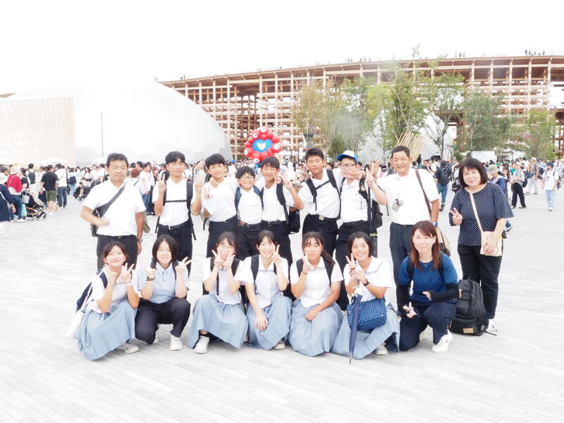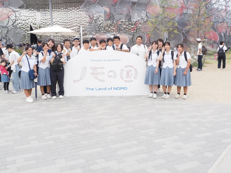 修学旅行1日目。朝早く6時頃に天草町を出発。熊本駅からは新幹線や大阪メトロなどを乗り継いで行き、「大阪・関西万博見学」を行いました。ノモの国などのパビリオン見学やお買い物などを楽しみました。