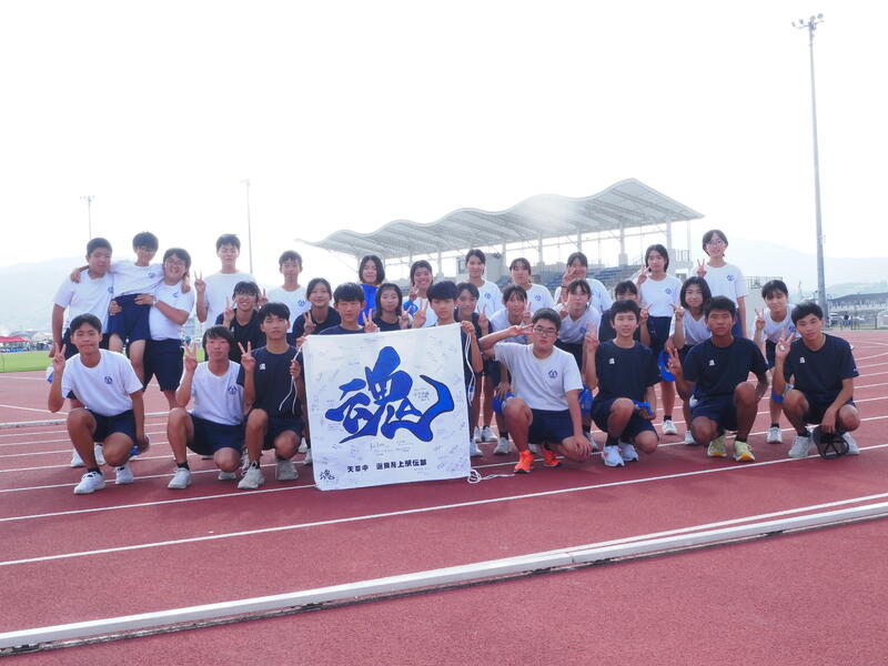 天草中学校の結果は、男子が「15位(17校中)」、女子が「8位(16校中)」でした。男女ともに、昨年度のタイムを大きく更新する走りを見せてくれました。女子は昨年度の順位(14位)から今年度大きく順位を上げましたので「躍進賞」を受賞しました。天草中学校は少ない生徒数ですが、これだけ頑張れたのはすごいと思います。