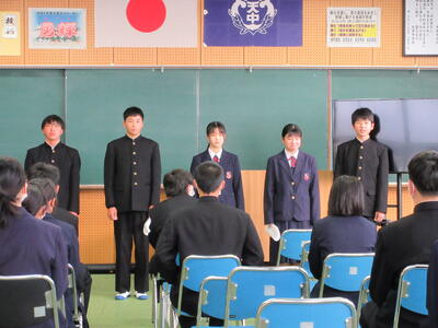 新生徒会役員の皆さん、これまでの天草中の伝統を引継ぎながらも、新たな風を吹かせてください。