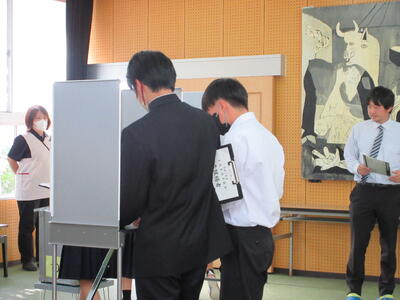 実際の選挙で使われる記載台や投票箱をお借りして使用しました。