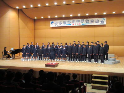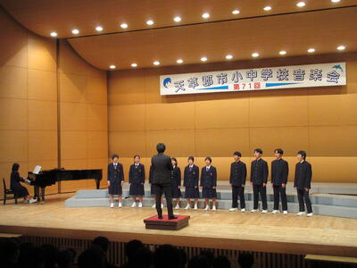 文化発表会で披露した3年生の「友~旅立ちの時~」と全員合唱の「郷愁歌」を天草市民センターの場で発表しました。
