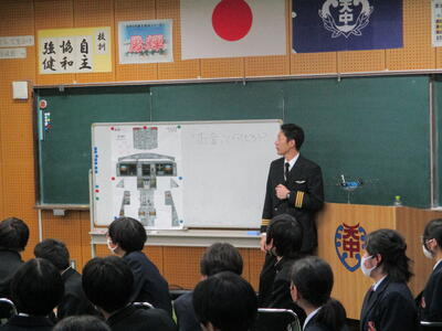 普段あまり聞くことのない飛行機のお話やパイロットのお仕事のお話に生徒たちは興味津々で聞き入っていました。