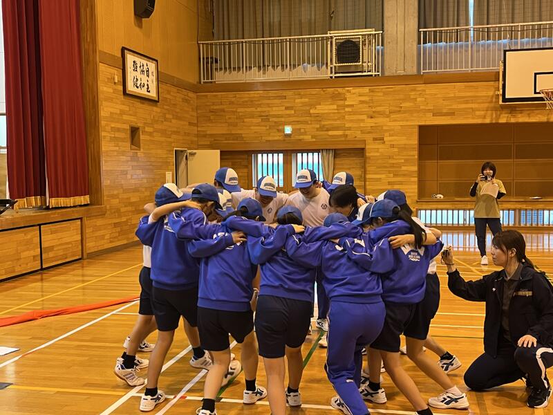 赤団、白団ともに円陣を組み、運動会に向けて結束を高めました。