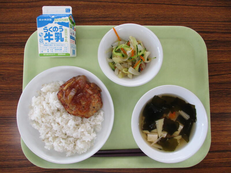 牛乳 麦ご飯 いわしの生姜煮 大根のナムル さつま汁