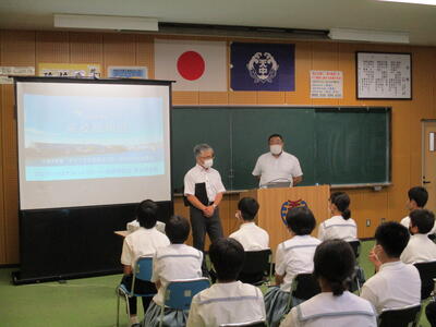 はじめに夏休みに天草市の姉妹都市エンシニータスを訪問した生徒の体験記が発表されました。文化や習慣の違いなど自らの言葉として語ってくれました。