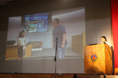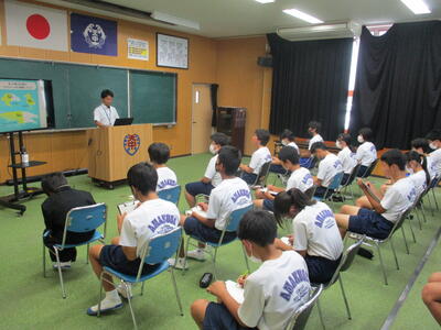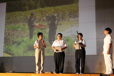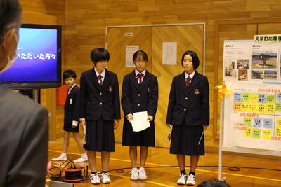 はじめに夏休みに天草市の姉妹都市エンシニータスを訪問した生徒の体験記が発表されました。文化や習慣の違いなど自らの言葉として語ってくれました。