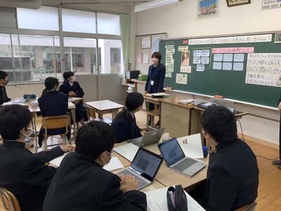 2年生の天草体験学習でACNの吉田さんにお越しいただき、「情報発信」について指導していただきました。吉田さんは本校の卒業生でもあります。
