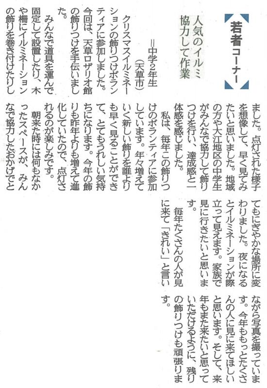 またそのときのことを綴った作文が熊日新聞の若者コーナーで紹介されました。