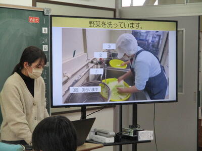 学年ごとの発表では1年生が1次産業体験、2年生が職場体験について発表しました。