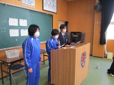 1年生は、宿泊教室や一次産業体験など総合的な学習の時間に行った体験活動で学んだことなどについて、劇仕立てで発表しました。4人と少ない人数ですが、本当に仲が良く協力し合って各活動を頑張っていることが伝わる劇でした。