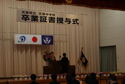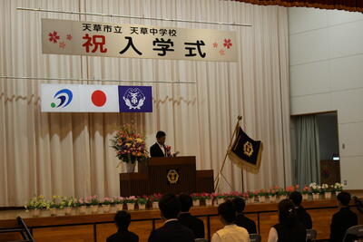 ようこそ、天草中学校ホームページへ。天草中学校は、熊本県天草下島の西海岸に位置する全校生徒30名の学校です。「全員主役、全員本気、全員成長」を教育理念とし、学校教育目標「郷土を愛し、夢の実現をめざし挑戦し続ける生徒の育成~常に向上心を持ち、社会に出て通用する力を身に付ける~」、生徒会スローガン「全力全進」の下、日々の教育活動に励んでいます。