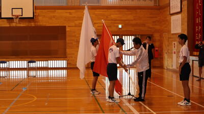 選手宣誓の後、全校生徒・職員からのメッセージが入った応援期が渡されました。