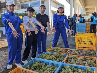 9月7日(日)に、高浜ぶどう収穫が行われ、天草中からも11名の生徒と5名の先生方がボランティアに参加してくれました。天草町平戸付近の畑で収穫体験と選別作業体験を行いました。天草町の宝、高浜ぶどうをこれからも守り、大切にしていってほしいと思います!