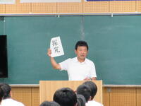 今年度本校では、日本財団の助成を受け、海洋教育パイオニアスクールとして海に関する学習を進めています。そこで今回は高浜にある天草海の学校の清水様にお越しいただき、海洋教育講話を行いました。長年、白鶴浜に産卵に来るウミガメの保護活動をされています。