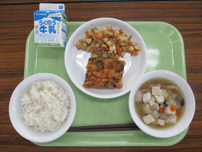牛乳 麦ご飯 千草焼き つぼん汁 たけのこのひこずり
