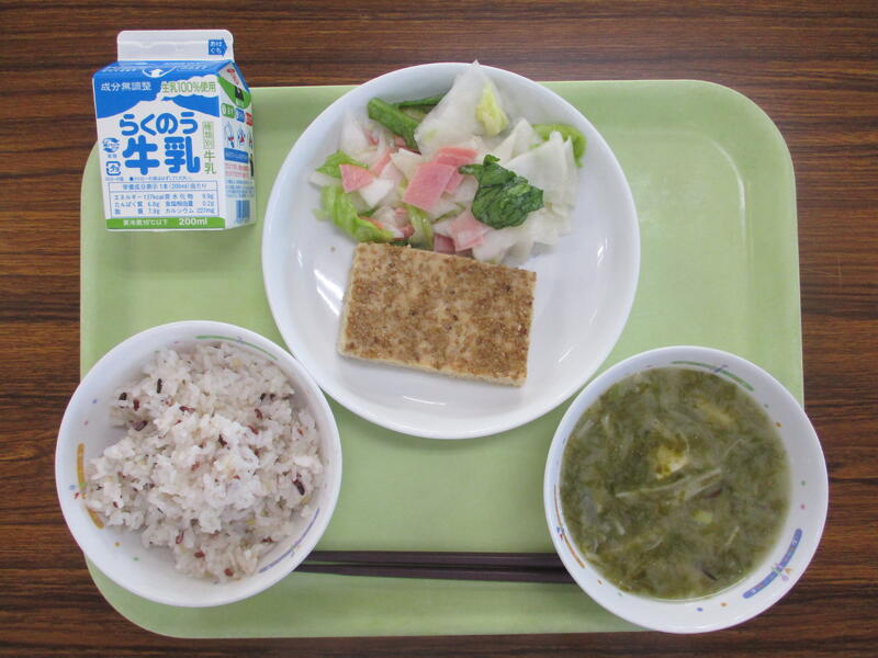 牛乳 五福米 松風焼き かぶのサラダ あおさみそ汁