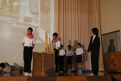 1年生は世界遺産額で学んだことを生かし、ユーモアを交えながらキリスト教関連遺産や、天草に伝わる南蛮文化について発表しました。