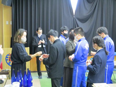 始業式の後には天草市商工会青年部様から3年生にたこストラップが贈られました。