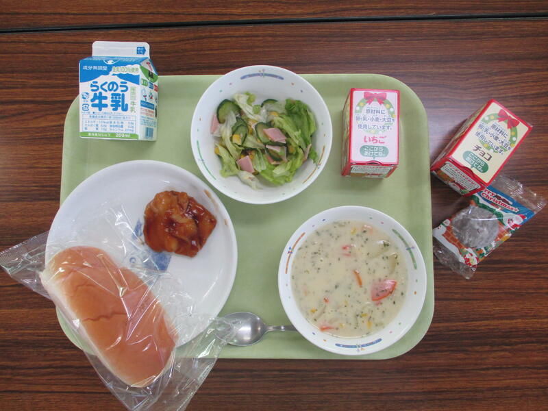 牛乳 ミルクパン セレクトデザート 照り焼きチキン レタスサラダ クリスマスあったかスープ