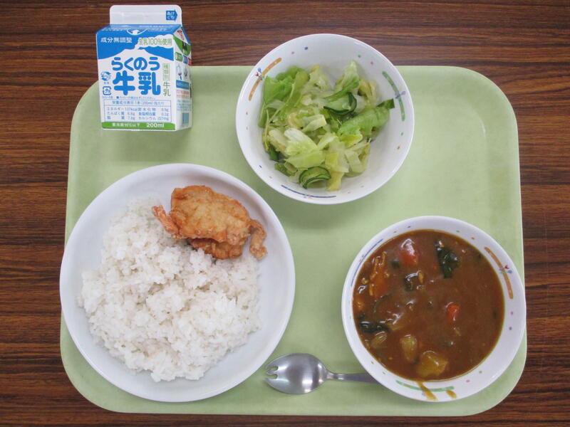 牛乳 チキンカレー から揚げ グリーンサラダ