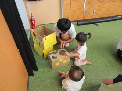 はじめにお互いに自己紹介をし、紙芝居をしたり、ゲームや自分たちで作ったおもちゃを使って楽しみました。