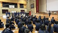 2月18日に生徒集会が行われました。はじめに表彰が行われましたが、生徒会執行部からは、節分イベント「桃太郎Z~失われた言葉~」の表彰がありました。先着5名への賞状とちょっとした商品が贈呈されました。楽しいことを増やそうと色々と企画を考えてくれている生徒会執行部。しかし、そのイベントを楽しもうとする生徒がいなければ成り立ちません。みんなが「楽しもう」とする意識があるから、執行部も「よし、次は!」というモチベーションにつながるのだと思います。楽しいイベントでした。そのあと、各専門委員会からのお知らせがあり、最後に3年生へ感謝の思いと受験に向けた激励を込めた「三中コール」が1・2年生から送られました。何気ない日常生活の1ページですが、心温まる時間となりました。