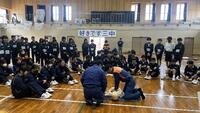 2月25日(水)に2年生は保健体育の授業として、救命救急法の講習会がありました。荒尾消防署から講師の方々に来ていただき、詳しく説明していただき、実習を行いました。4月には職員も講習を受けていますが、命に関わる大切なことなので、繰り返し実施することが大事だなと改めて思いました。生徒は真剣に講習会に参加していました。いつそのような場面に遭遇するか分からないので、「生きる力」を養ういい時間になったと思います。