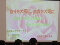 2月27日(金)に1年生に向けた性教育講演会が行われました。助産師の島津恵子様にお越しいただき、「自分を大切に、命を大切に~命のつながりを通して、自分の大切さを知る~」というテーマでお話しいただきました。真剣な表情で聞き入る1年生を見て、きちんと自分事として捉えていることを感じ、1年間で大きく成長したと思いました。先日の救命救急法とともに、「生きる力」を養うとてもいい時間になったと思います。