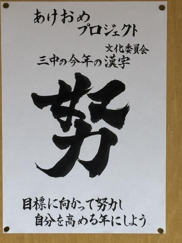 文化委員会から出されました。「目標に向かって努力し、自分を高める年にしよう」という言葉も添えられています。あらゆる生徒会活動にこの言葉が反映されるといいですね。
