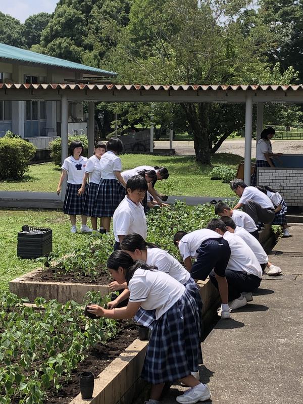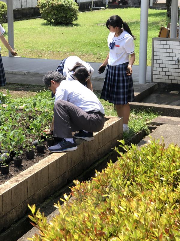 本日(6月5日)、昼休みに園芸委員と中村先生で学級花壇にサルビアを植えました。