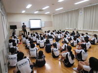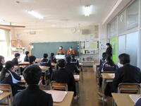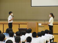 ★7月1日(金)に長洲町教育委員会統合推進室から来ていただき、生徒へ長洲町中学校の統合について説明をしていただきました。