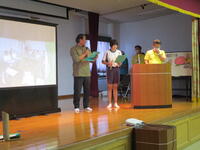 腹栄中学校運営協議会の皆さんが発表をしていただきました。3年生の竹内歩さんと中島妃彩さんも参加してくれました。