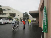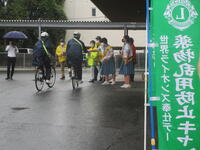 あいにくの雨でしたが、生徒会役員も一緒にチラシを配布しました。
