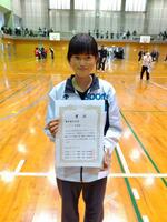 熊本県中学生バトミントン選手権大会個人戦に出場した2年生の行平香菜さんが、見事3位に入賞しました。おめでとうございます。