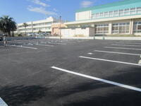 プールが解体され、そこに建設中だった駐車場が完成しました。来校の際はご利用ください。正門から入り、右側です。