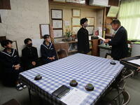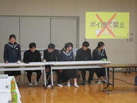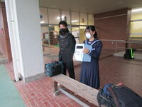 新生徒会役員が活動を開始しています。現在、書き損じはがきの回収を呼びかけ、朝からピローティーに立ち、回収を行っています。ご家庭からのご協力をお願いします。