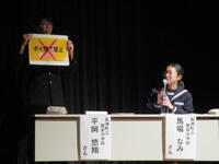 12月13日(水)にながす未来館で行われた「地域と学校の連携・協働」推進実践交流会のパネルトークで、中学生代表として平岡悠翔さんと馬場なみさんが参加しました。大人の中でも素晴らしいトーク力を発揮し、参加の皆様からたくさんお褒めの言葉をいただきました。