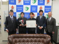 1月25日(木)、毎日カップ体力つくりコンテスト特別賞入賞報告に長洲町教育長を訪問しました。校長と共に髙本祐二郎体育委員長、山田昊宜体育副委員長、西川誠教諭で教育長室を訪問し、戸越教育長、松永教育審議員、松林教育課長にご対応いただき、有明新報及びひまわりテレビの取材もありました。