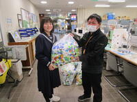 人権ボランティア委員会で行っていたペットボトルキャップ回収で、19605個のキャップが集まりました。1月26日(金)に、ボランティア委員長の馬場ふみさんから長洲町役場住民環境課の担当者に渡されました。キャップは、回収業者を通して「世界の子どもにワクチンを 日本委員会」に寄付され、発展途上国の子どもたちのワクチンに使われます。