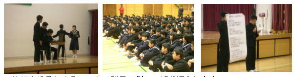 生徒会がSNSの利用について考える劇をしました。・・・11/8(火) 投稿日時 : 2016/11/08 学校サイト管理者 生徒会役員によるスマホの利用の劇の一部を紹介します。 母親がスマホをさわっている子どもに向かって「いつまでスマホさわってるの!(怒)少しは勉強しなさい。」子ども「いいよ、勉強せんでも。」母親「ご飯の時も、トイレでも、寝るときもスマホばかりさわって、1日に何時間もゲームやネットしたり・・・。そのせいか、あまり私達ともしゃべらなくなったし(ため息)、成績も下がるし、スマホを持たせないほうがよかったのかしら。」その後、パソコンの操作を誤って架空請求されて悩む場面や知らない人とラインをしてトラブルに巻き込まれた場面を全校生徒に紹介しました。スマホ等の利用について生徒全員が考え直すよい機会となりました。 SNSは便利な反面、使い方によってはマイナスな面もあります。再度、ご家庭でもスマホ等の利用について子どもさんとの話し合いをお願いします。 2年前、生徒会が作ったスマホ利用の心構えを紹介します。腹栄中生徒会のスマホ等の利用ルール○自分のために ネット上ではプライバシー(住所や電話番号等)を公開しない ○友達のために ネット上の悪口に参加しない。付き合わない。退出する。○将来のために スマホは学校に持って来ない。(学校は勉強するところ) 午後9時以降はスマホやケイタイを使用しない。(夜は学習時間を確保する) Tweet {{options.likeCount}} {{options.likeCount}} 0 コメント