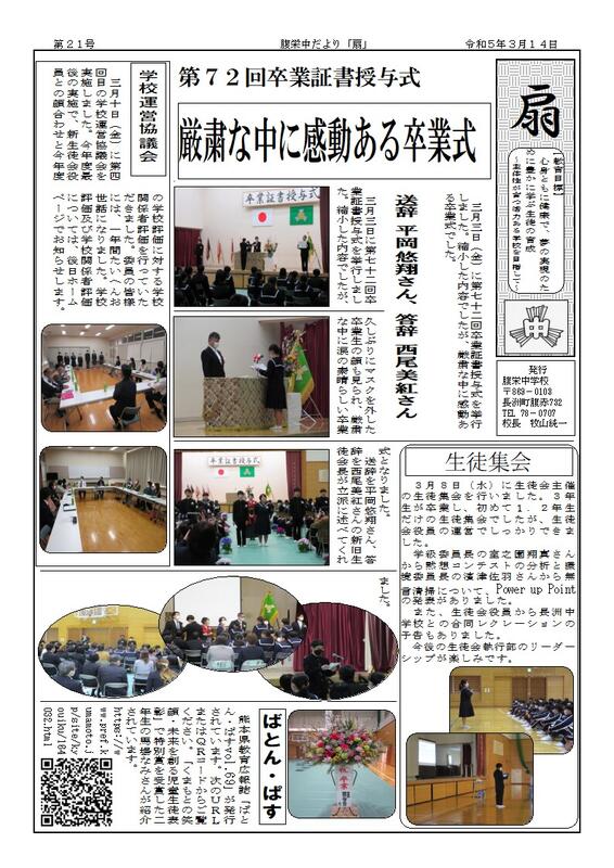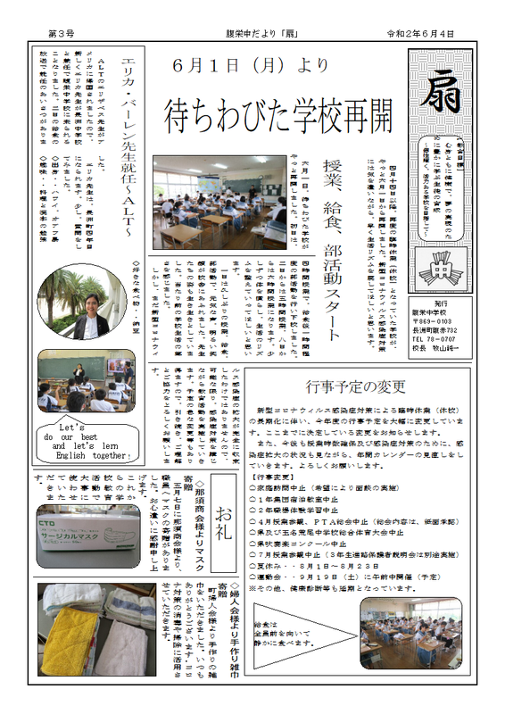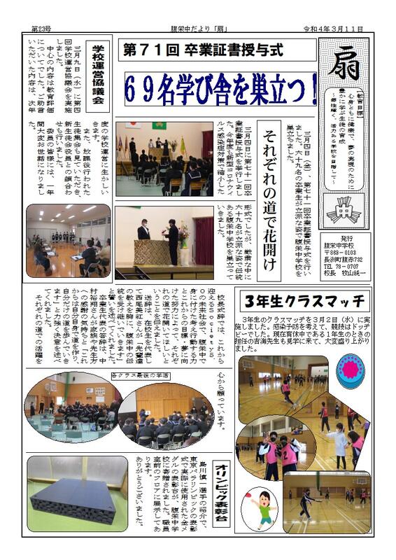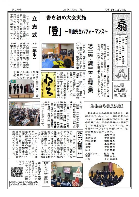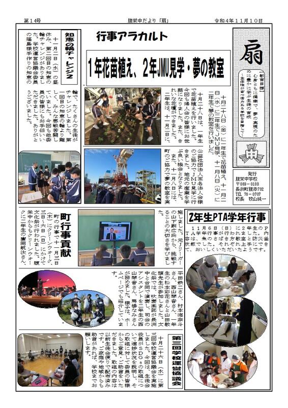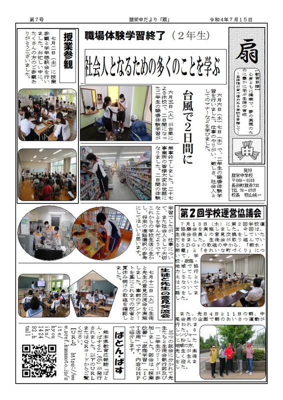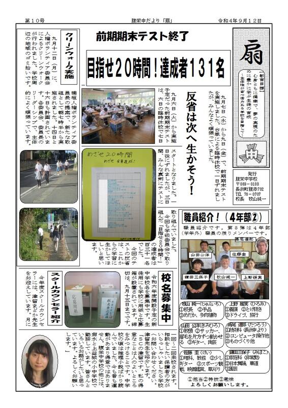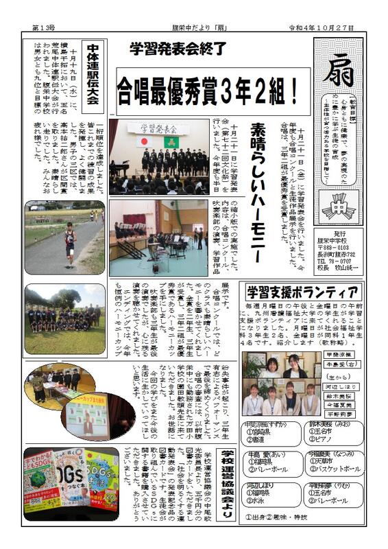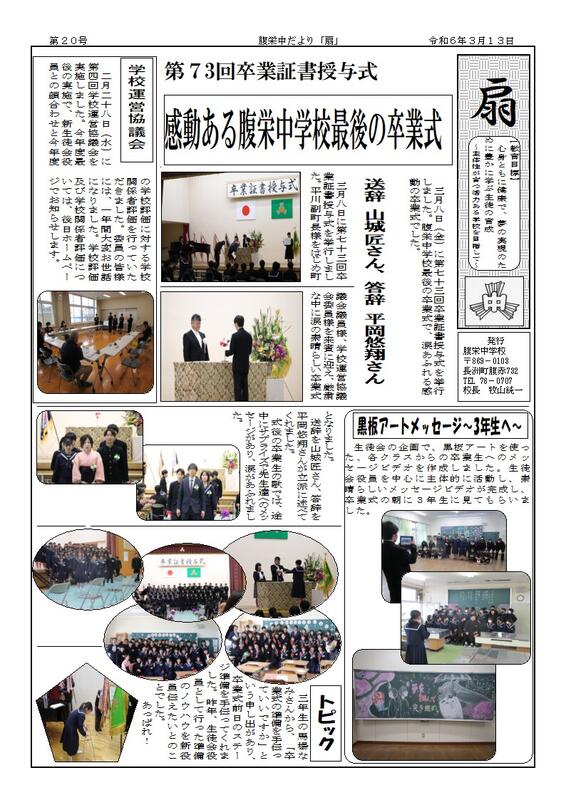 長洲町立腹栄中学校はR6.4.1に長洲町立長洲中学校と統合しました。