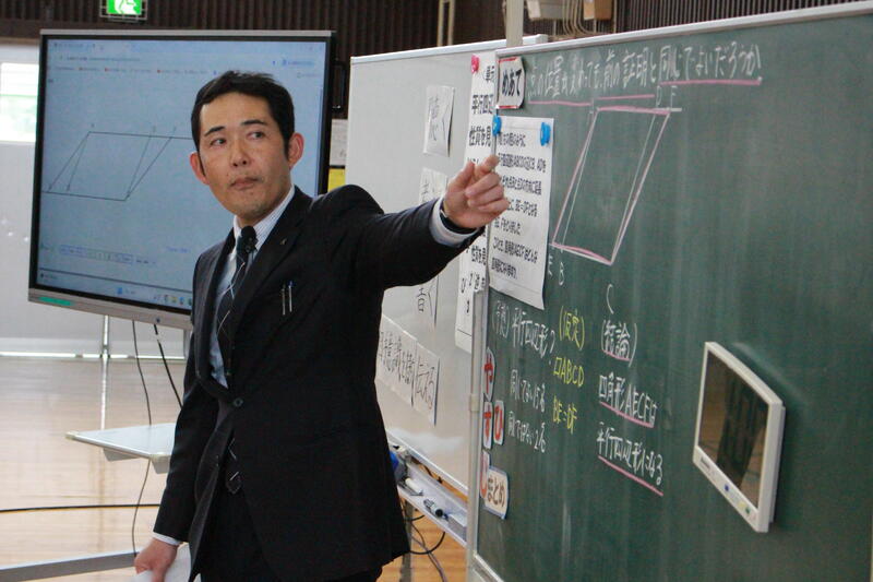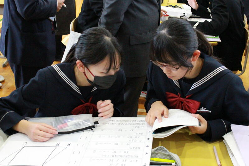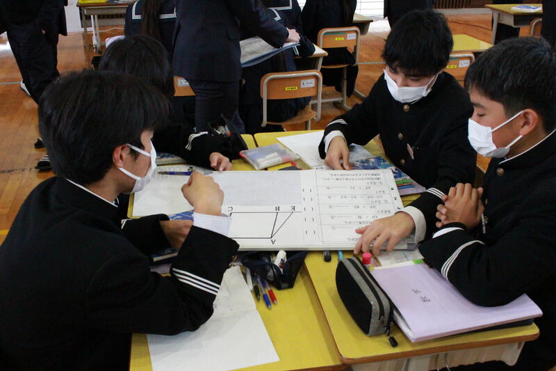 2月6日(金)に水俣市教育委員会が指定する学力向上研究推進校研究発表会を行いました。2年生の数学科「図形の証明」の公開授業を行いました。生徒たちは指定された問題から、本時のめあてを考え、解決に向けて見通しを持ってペアやグループで話し合いながら取り組むことができました。