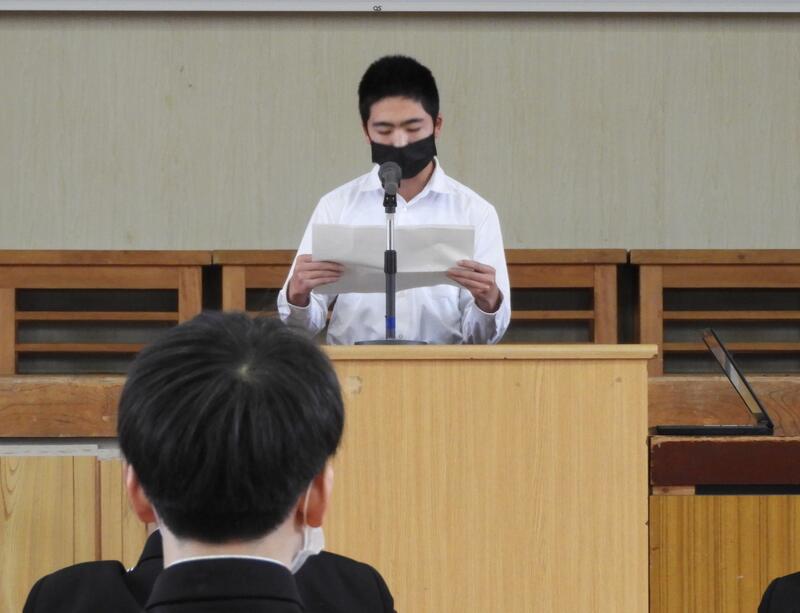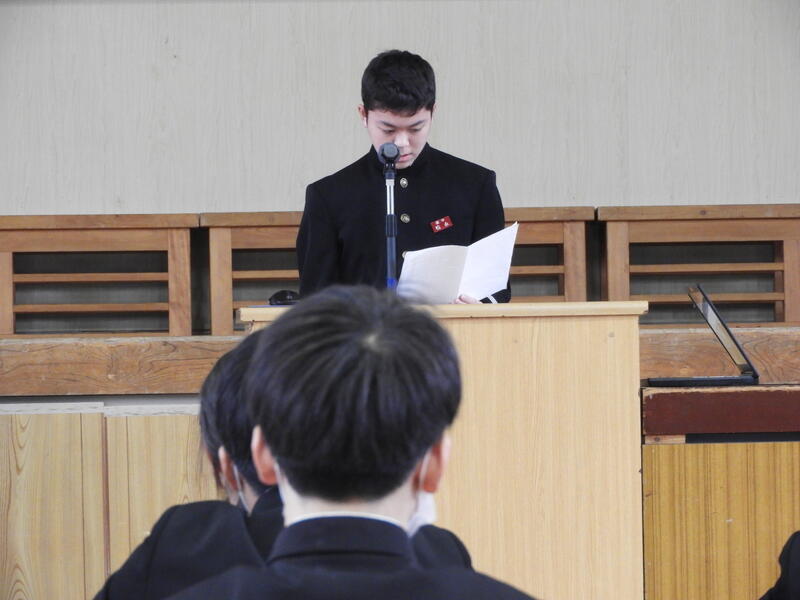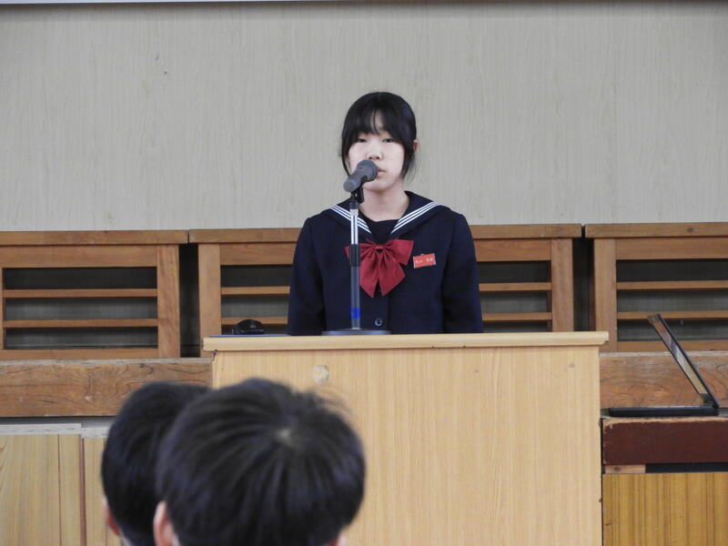 各学年の代表生徒が1年間の振り返りと次年度への抱負を発表し、その発表を通して、生徒一人一人が自分の成長を振り返る良い機会となりました。