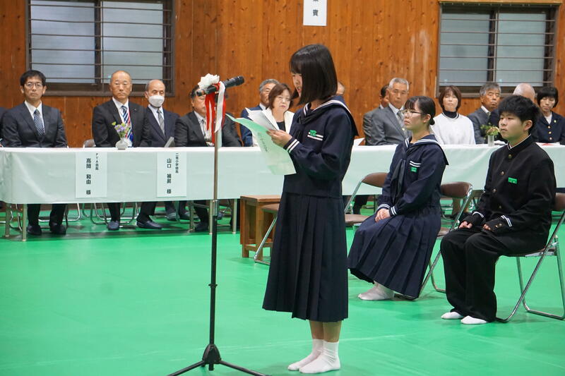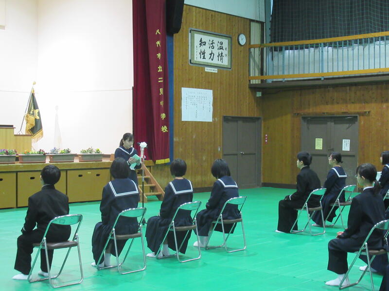 令和8年度入学式 投稿日時 : 04/24 承認者 4月9日(木)に、令和8年度二見中学校入学式がありました。今年の1年生は8人が加わり、全校生徒18人でスタートしました。在校生も新1年生も、瞳がキラキラと輝いていました。これから始まる18人の中学校生活が楽しみです!!