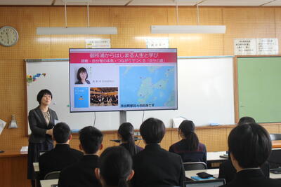1年生は、総合的な学習の時間において、これまで取り組んできた探究的な学習の成果を発表しました。生徒一人一人が課題意識をもって調べ、考えた内容を、自分の言葉で分かりやすく伝えようとする姿が見られました。